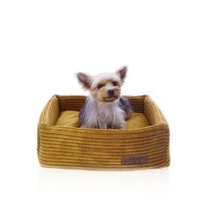 CUBE kwadratowe legowisko dla psa DOTTY - kolor musztardowy sztruks