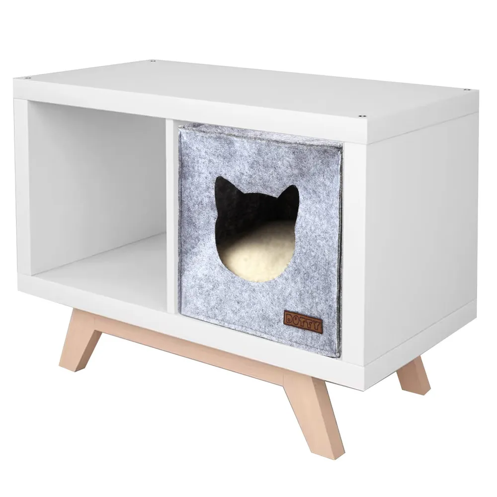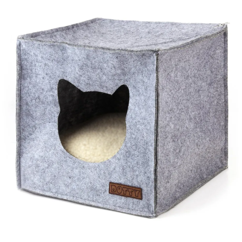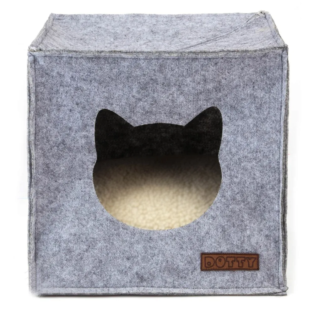 Filcowa budka dla kota DOTTY - szara - do regału KALLAX – wysokiej jakości legowisko dla psa, komfortowe i trwałe. Idealne do codziennego odpoczynku, łatwe w utrzymaniu czystości.