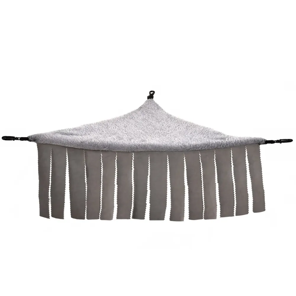 - Hamaczek można zawiesić w klatce za pomocą wszytych solidnych, metalowych karabińczyków.