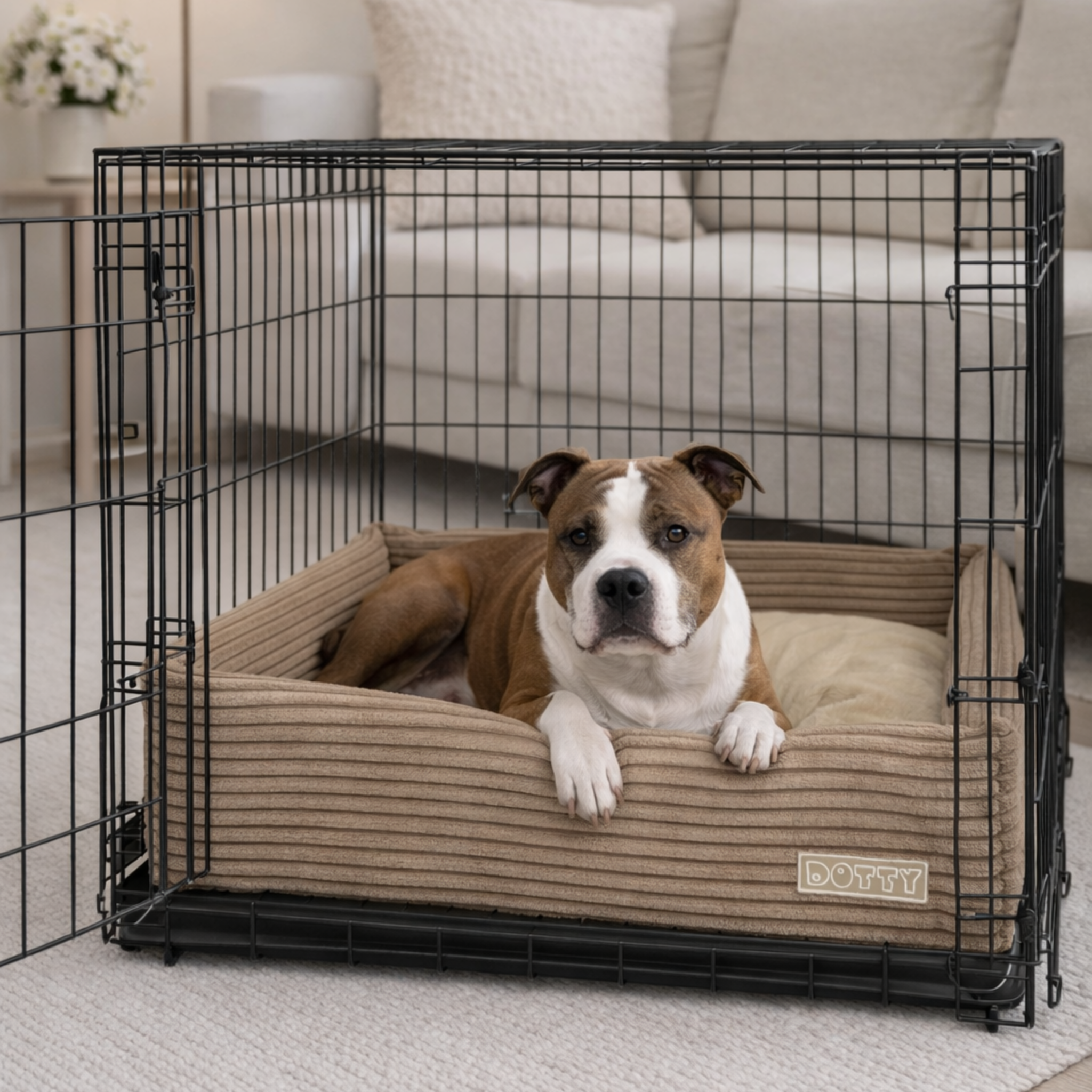 Legowisko do klatki - cappuccino beż – wysokiej jakości legowisko dla psa, komfortowe i trwałe. Idealne do codziennego odpoczynku, łatwe w utrzymaniu czystości.