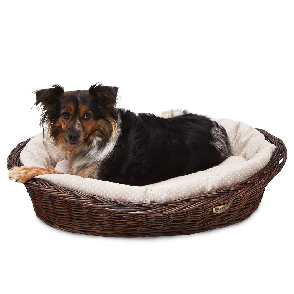 Koszyk z naturalnej wikliny w komplecie z miękkim, bawełnianym legowiskiem