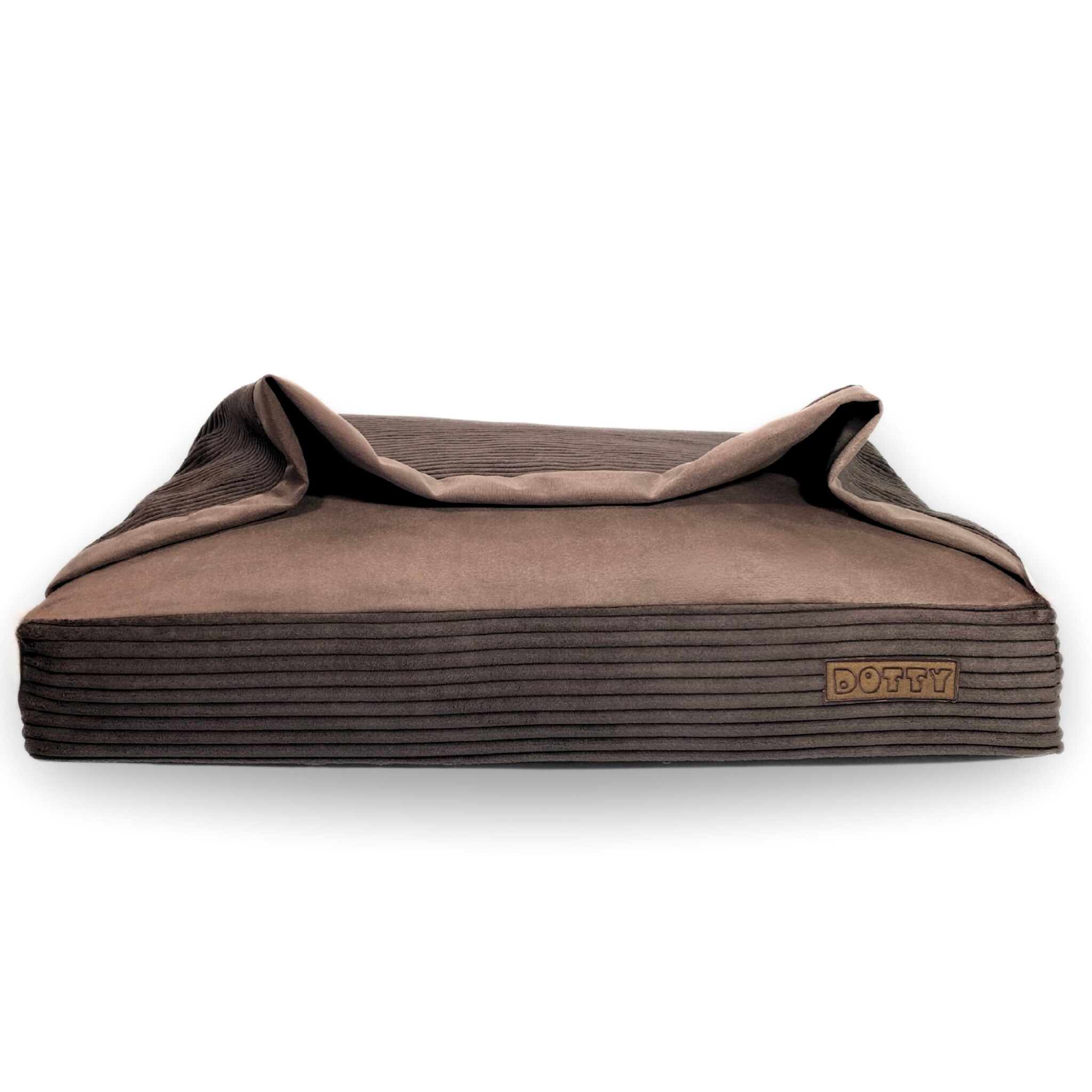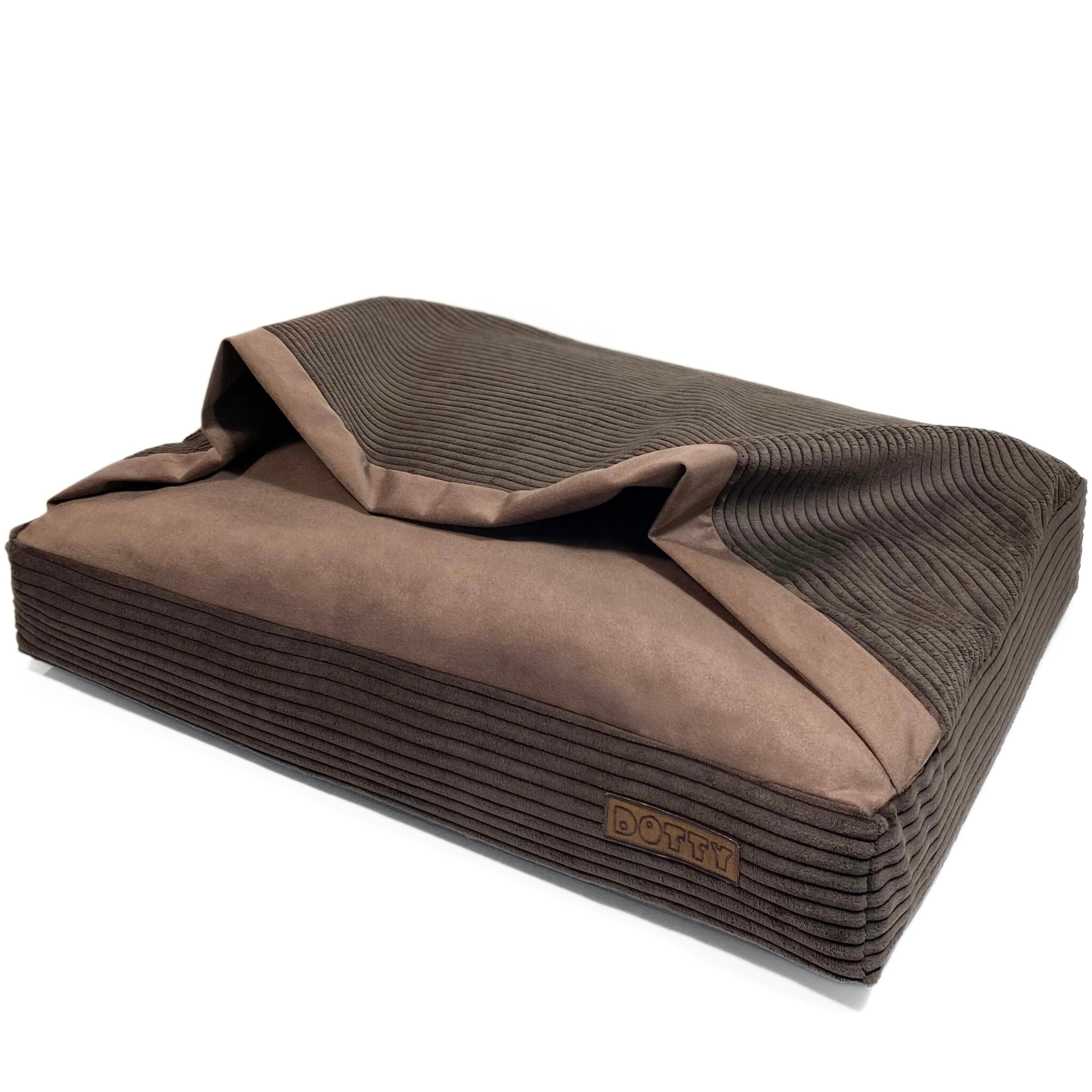 Ortopedyczna norka dla psa w połączeniu sztruksu i weluru to legowisko stworzone dla psów, które potrzebują wsparcia dla stawów, ale jednocześnie pokochają miękkie i przyjemne w dotyku materiały.
