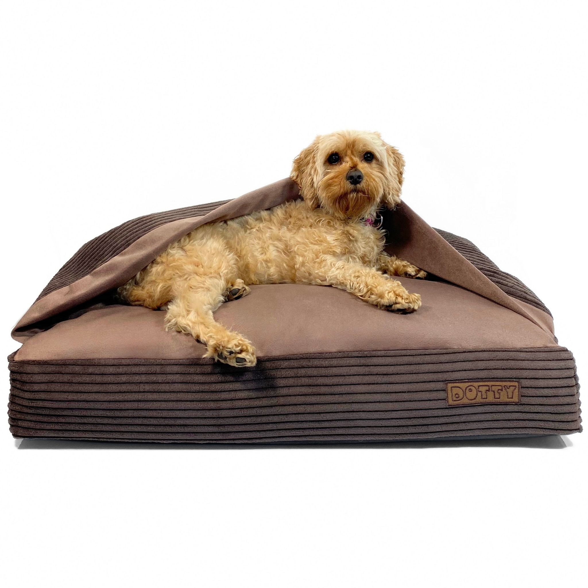 Ortopedyczna norka dla psa z materacem memory VISCO i wykończeniem sztruks + welur - miękkie, komfortowe legowisko wspierające stawy i poprawiające jakość snu.