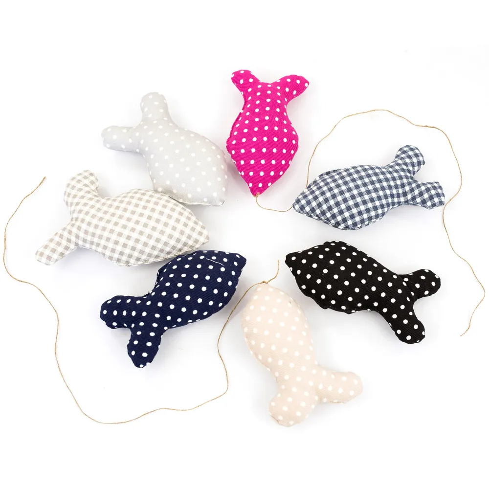 Maskotka z grubej bawełny - rybka na sznurku - ręcznie szyta