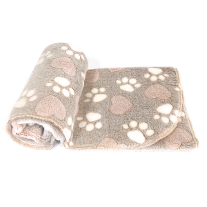 Miękki polarowy kocyk dla psa lub kota - DOTTY - beżowy - wzór w łapki